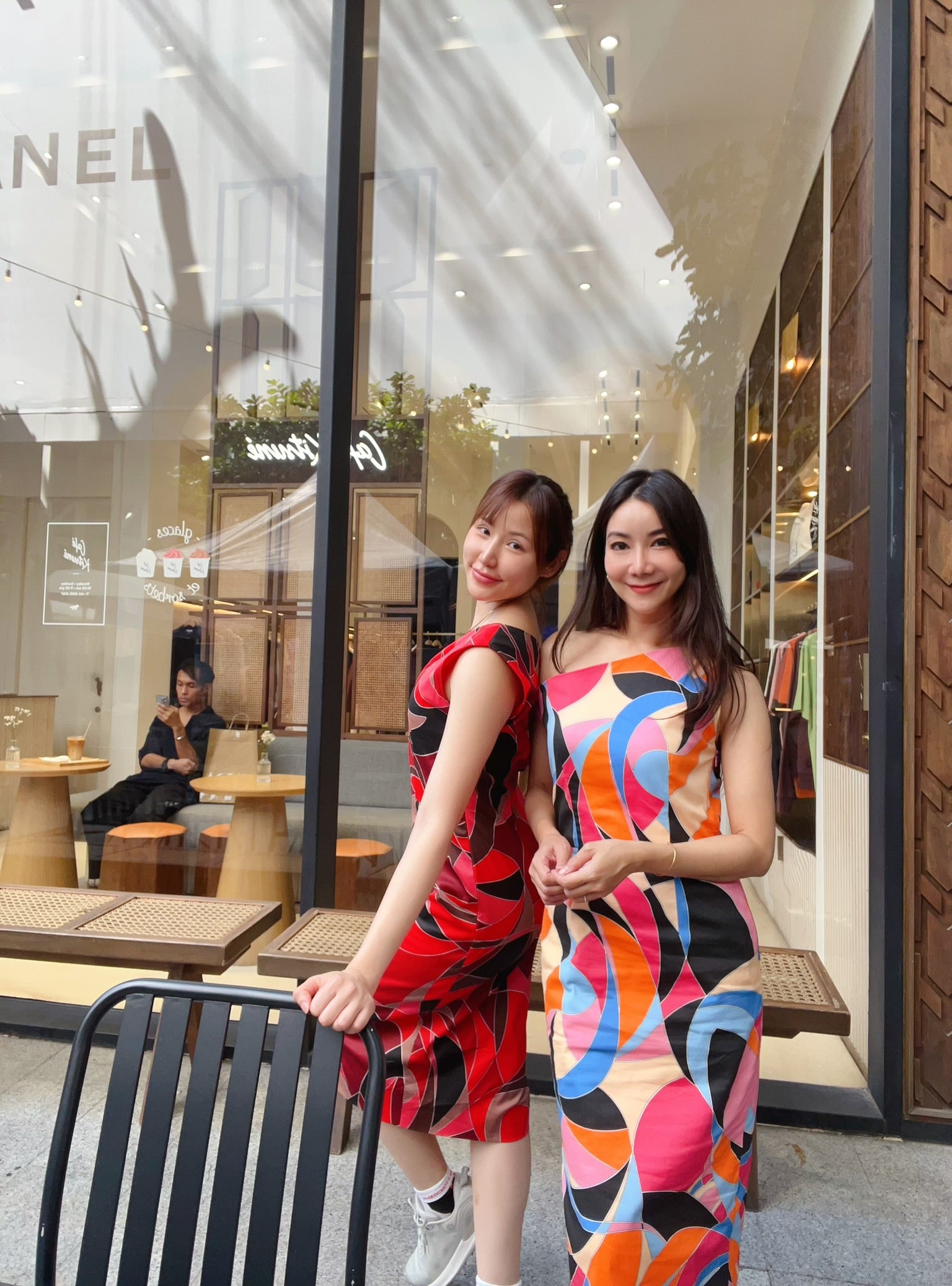 A fun and sophisticated statement. This cotton midi dress, with its modern one-shoulder design and vibrant graphic prints, is ideal for a smart casual look.