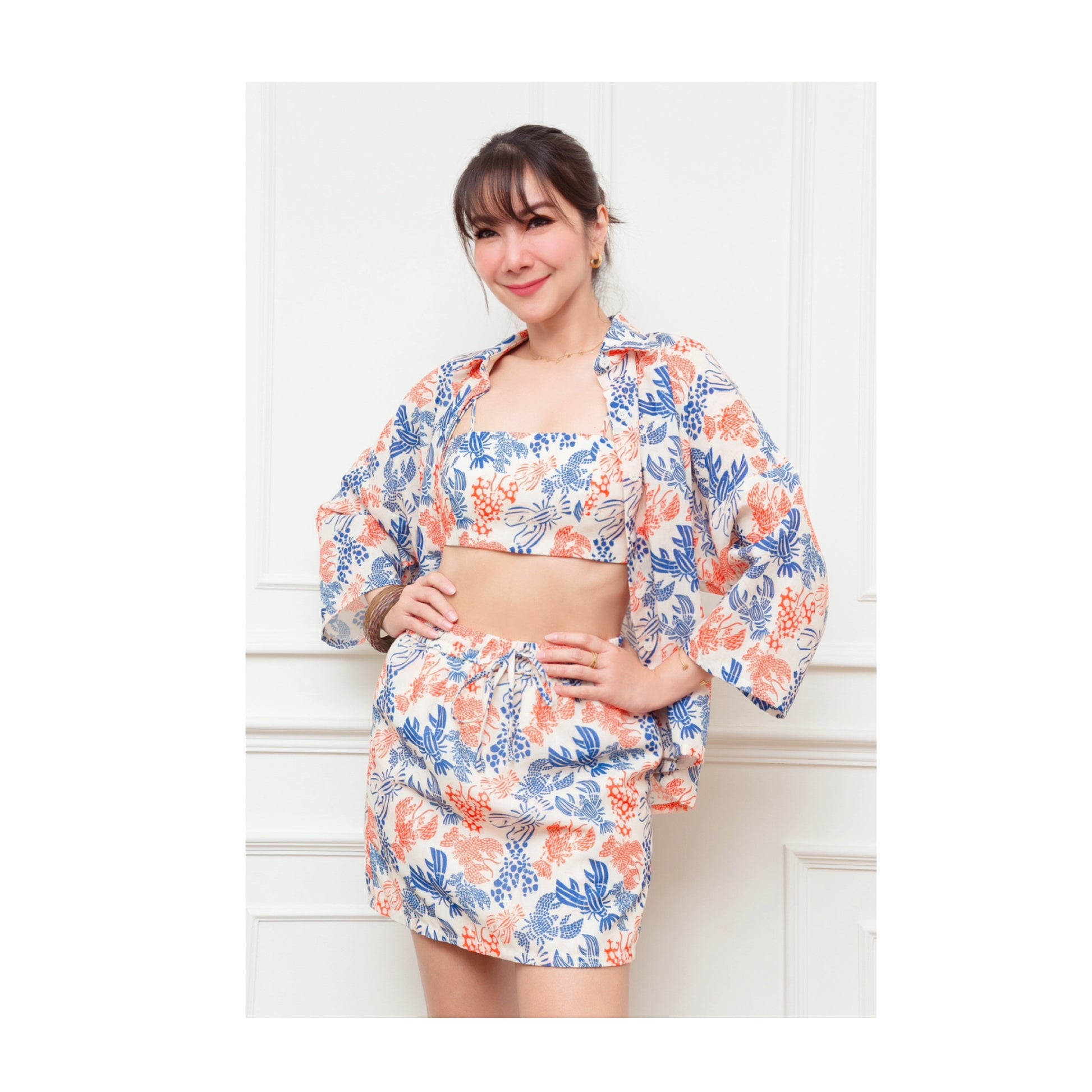 Fun, fresh, and irresistibly charming. This casual mini skirt, adorned with playful lobster prints, is your perfect companion for lively summer styling.